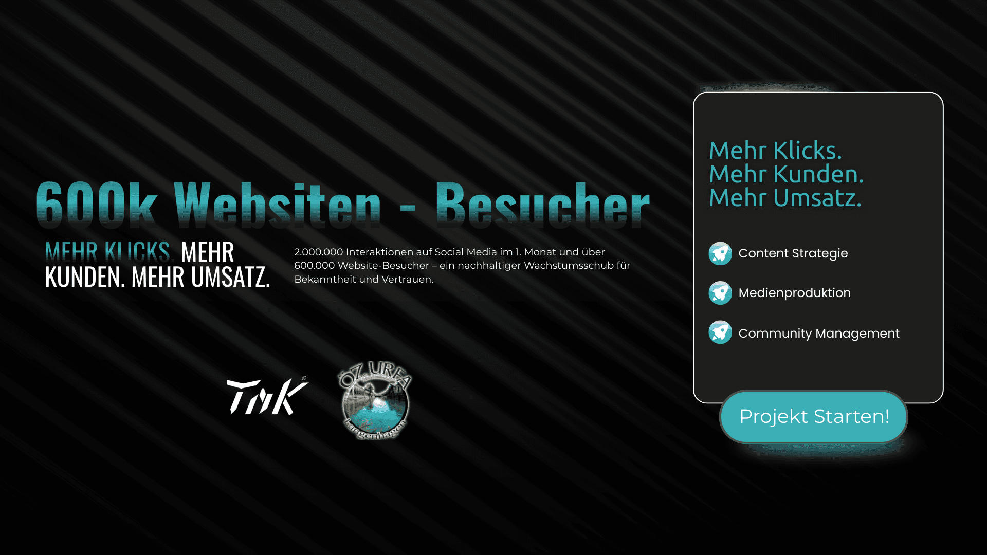 Deutlich höhere Reichweite, stärkere Markenbindung und messbare Performance-Steigerungen: 200.000 Interaktionen auf Social Media und über 100.000 Website-Besucher – ein nachhaltiger Wachstumsschub für Bekanntheit und Vertrauen.